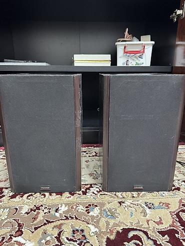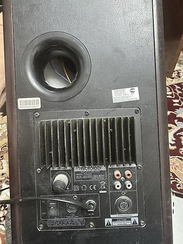 - Встроенный усилитель (находится в правой колонке), радиатор охлаждения на задней панели