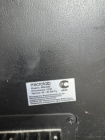 В комплекте: две колонки (активная и пассивная). Модель: Microlab SOLO2C, серийная/заводская маркировка на задней панели.
