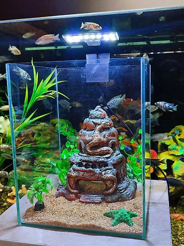 Новый аквариум. Объём 5 л. Хороший подарок детишкам. В стиле Губка Боб. В наличии разные виды аквариумов, декораций, более чем 40 видов рыбок. На любой вкус. Звоните перед выездом.