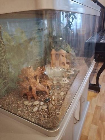 Продается аквариум в комплекте с рыбками 4500сом: длина 55 см; высота