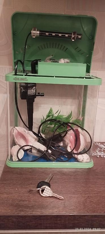 Продаю аквариум на 50 литров полный комплект+ рыбки а также всё что на фото ,аквариум отдам за 6000 сом в комплект аквариума входит: фильтр,подсветка, обогреватель, градусник а также зелённые рас...