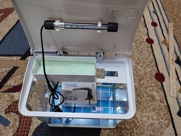 Аквариум заводской Китай. Новый. Ещё в упаковке. В комплекте встроенный светильник помпа фильтрации аэрации.