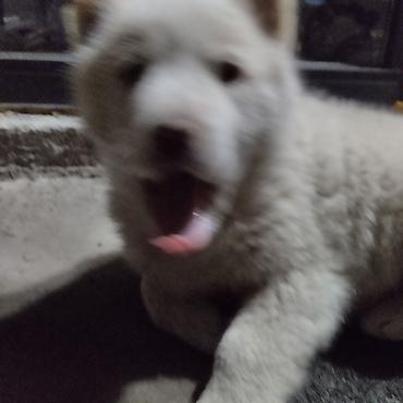 Продается щенок, порода смешана с алабаем и хаски. 2-3 месяца, очень игривая, знает команду "дай лапу"