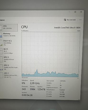 🔹 Процессор: Intel Core Ultra 9 185H (16 ядер / 22 потока)