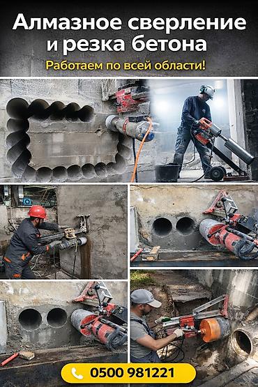 Алмазная резка и алмазное бурение бетона, Алмазный дск, бетон кескич, крпич кескич, Эшик, терезе, окошка, ачабыз. Профессиональные работы по: - резке проемов в бетоне, кирпиче, монолит, стяжка, ...Вход•Регистрация