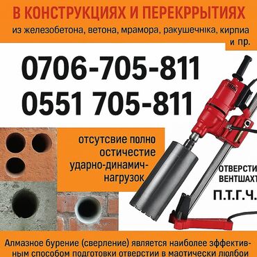 Алмаз менен кесуу,бетон кирпич,пескаблок баардык турун Эшик,терезе ачабыз!Алмазное сверление отверстий для. ве.нтиляции......... Алмазное бурение, сверление для кан.али.за.ц.ии. Сверление отверстий...