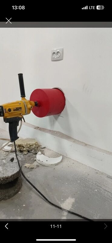 - Бурение сквозных и глухих отверстий под вентиляцию, кондиционирование, дымоходы, водопровод, канализацию, электрику.
