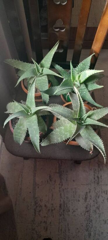 Алоэ в горшках (алоэ вера/алое древовидное) - Домашние суккуленты с мощными мясистыми листьями и характерными зубчиками по краям. - Выращены в отдельных пластиковых кашпо белого цвета с поддонами;...