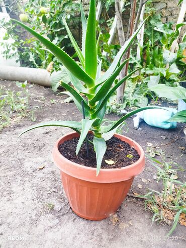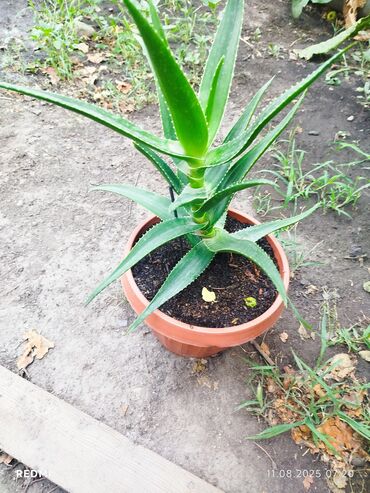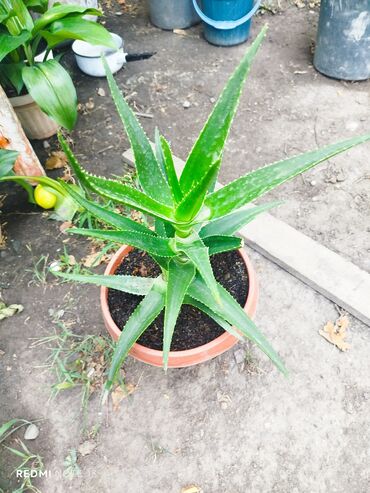 Алоэ вера в горшке - Вид: Aloe vera (суккулент, лекарственное растение). - Размер: взрослое растение с длинными мясистыми листьями. - Горшок: пластиковый декоративный горшок с поддоном. - Уход: ...