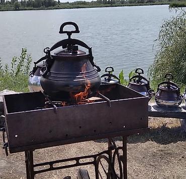 - Подходит для костра, мангала, газовой и электрической плиты.
