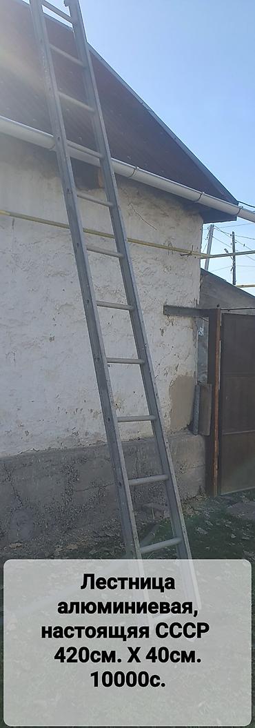 Металлическая приставная лестница - Материал: сталь (профильная труба/уголок), сварные ступени - Высота: около 4–5 м (подходит для работ на фасаде, крыше, чердаке) - Конструкция: прямая, узкая, ле...