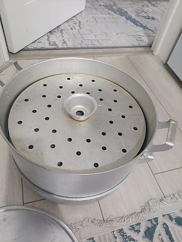 МАНТЫШАРИК (манты-казан) 4-ярусный, алюминиевый биздин уй булоого ото эле чондук кылат экен кастрюля 13л диаметр 34 см чоон - Диаметр: 34 см (указано на коробке) - Количество ярусов: 4 паровых...