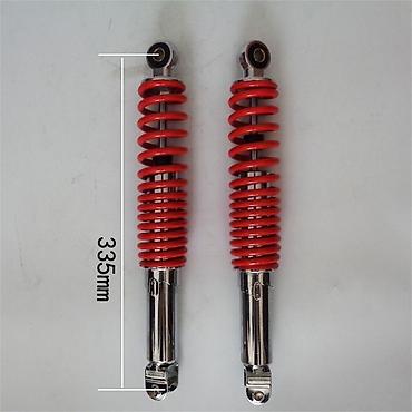 Пара амортизаторов для скутера длиной 335 мм. Доступны в двух цветовых вариантах: с черными или красными пружинами. Хромированный корпус придает амортизаторам стильный внешний вид. Эти амортизаторы обеспечивают плавность хода и поглощение ударов, улучшая комфорт и управляемость транспортного средства. Подходят для замены изношенных или поврежденных амортизаторов, а также для тюнинга.