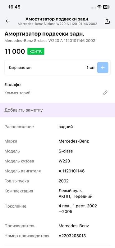 Назначение: замена штатного заднего амортизатора на автомобилях Mercedes‑Benz S‑Class кузова W220 указанного поколения. Подходит для комплектаций с параметрами выше.