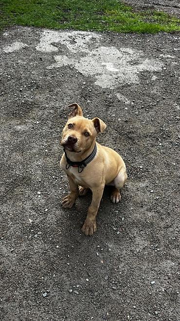 Американский стаффордширский терьер. В народе называют "Амстаф" .Прививки сделаны. 4 - месяца .