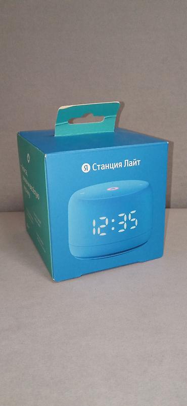 - Поставляется в фирменной коробке «Яндекс Станция Лайт». Цвет устройства — голубой.