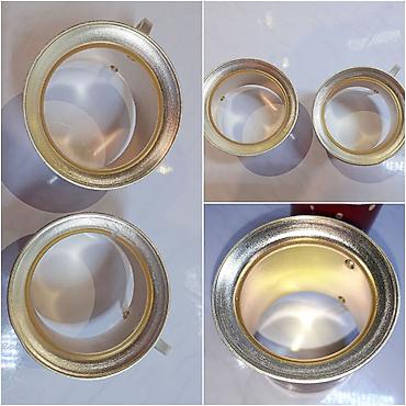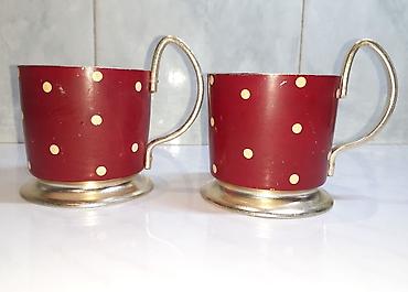 Продам эксклюзивные Золочённые Серебрянные подстаканники с эмалированным покрытием насыщенного гранатового цвета в молочный горошек и элегантной аккуратной ручкой производства времён СССР (1950х гг.), редкий выпуск. Паре подстаканников уже свыше 65 лет, конечно же на них следы бытования. На фото реальное состояние. Только серебро при касании издаёт звонкий звук с небольшим эхом, что и подтверждает качество (к примеру, аллюминивые издают напрочь глухой звук).