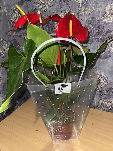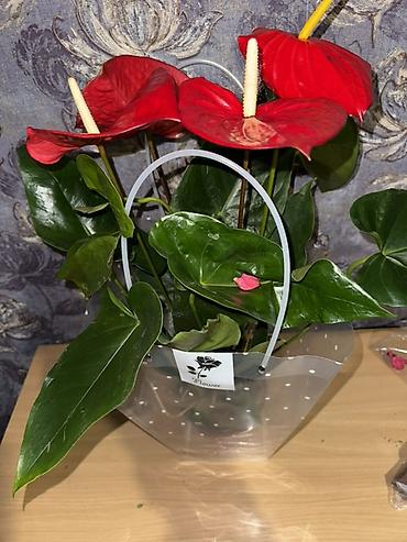 Антуриум (кызыл) 📏 Бийиктиги: 70 см 💰 Баасы: 1500 сом 🎁 Белекке эң