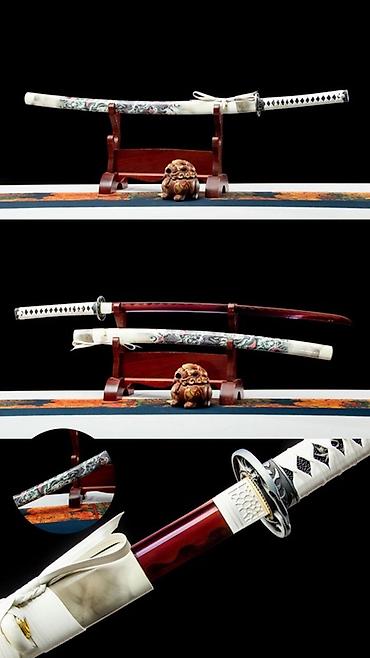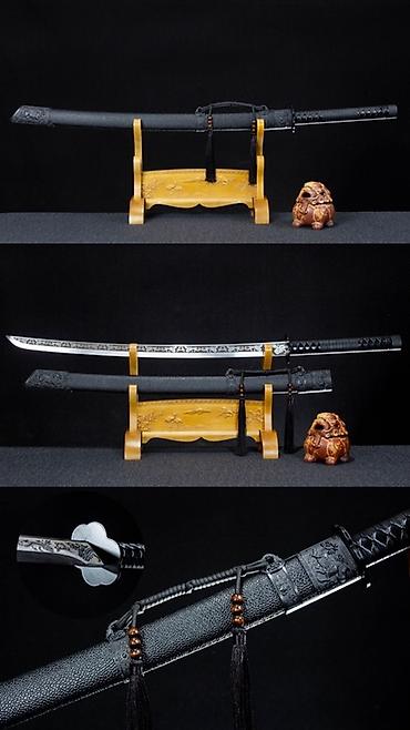 - Ножны (сая) лакированные, в черном цвете; на некоторых моделях – декоративная гравировка/рисунок (дракон, орнамент), плетёные шнуры и подвесы.