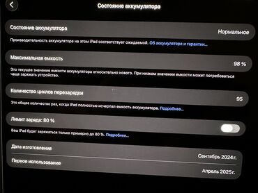 Продается Apple iPad Pro 11” (M4, 2024) 256 GB Покупала летом 2025 года новым, пользовалась очень мало, поняла, что планшет мне не нужен. Состояние практически новое, без повреждений (см. фото). ...