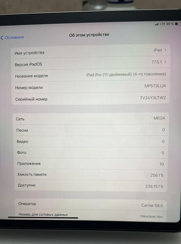 - iPad Pro (серый космос), корпус из алюминия, разъём USB‑C, магнитные контакты Smart Connector, камера с модулем LiDAR (двойной блок камер).