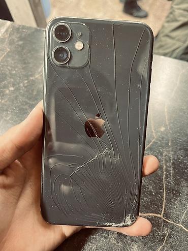 IPhone 11, 128 ГБ, цвет чёрный трещина на экране на работу не влияет face id не работает надо доработать через компьютер зади трещина