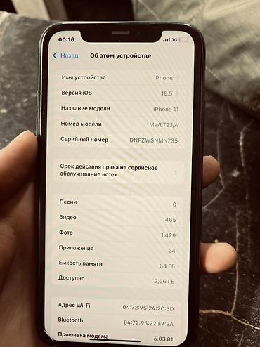 IPhone 11, 64 ГБ, черный Характеристики и особенности: - Дисплей 6.1" Liquid Retina, поддержка True Tone и Night Shift (на фото видно активные режимы). - Две основные камеры с ночным режимом, вспы...