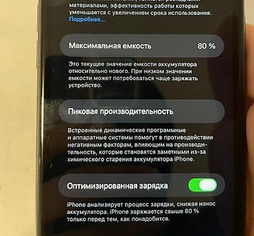 - Аккумулятор: максимальная ёмкость 80% (скриншот в галерее), включена «Оптимизированная зарядка».