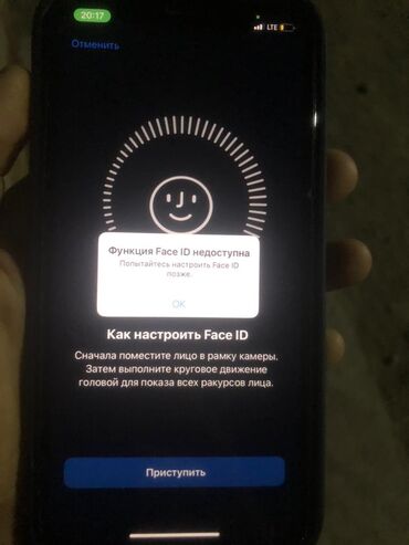 - На экране при попытке настройки появляется сообщение: «Функция Face ID недоступна. Попытайтесь настроить Face ID позже.»