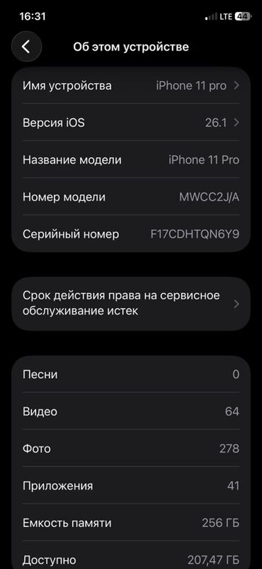 - На скриншотах: модель iPhone 11 Pro подтверждена в «О телефоне», серийный номер отображается