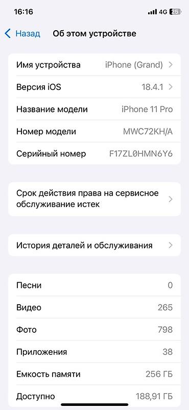Предлагается к продаже смартфон Apple iPhone 11 Pro в цвете Space Gray с объемом памяти 256 ГБ. Устройство оснащено тройной камерой, что позволяет делать качественные фото и видео. Работает под управлением iOS версии 18.4.1. Идеально подходит для повседневного использования, работы с приложениями и хранения большого объема данных.