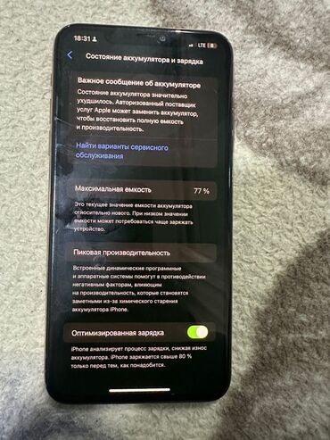 - В разделе «Состояние аккумулятора» отображается максимальная ёмкость 77%