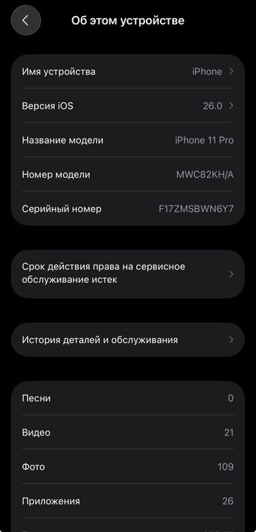 - iOS: 26.0 (скриншот «Об этом устройстве»)