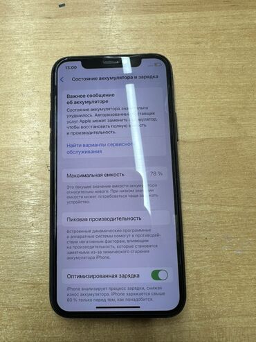 - Аккумулятор: максимальная ёмкость 78% (на экране состояния аккумулятора отображается уведомление о необходимости обслуживания)