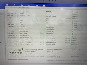 - Отчёт 3uTools: модель A2403 (iPhone 12), серийные номера модулей в норме, активация — да, статус проверок — «Normal», счёт теста 100, дата производства — 2020‑12‑27, зарядов — 313, iOS 14.6 на момент отчёта, Apple ID Lock — On, Jailbreak — No, оператор — Domestic SIM card needed, Wi‑Fi модуль — Low Temp Wi‑Fi.