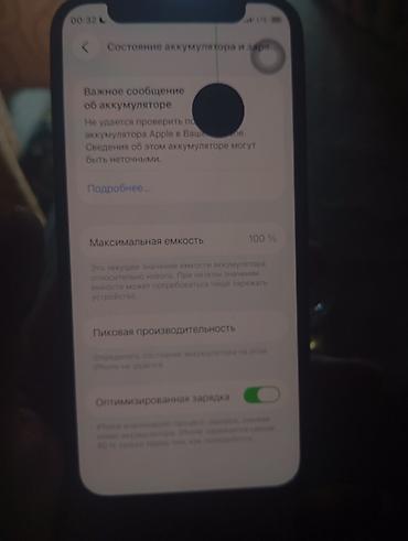- В разделе «Состояние аккумулятора» отображается максимальная ёмкость 100%, включена «Оптимизированная зарядка». Появляется системное сообщение «Не удаётся проверить подлинность аккумулятора Apple в вашем iPhone. Сведения об этом аккумуляторе могут быть неточными».