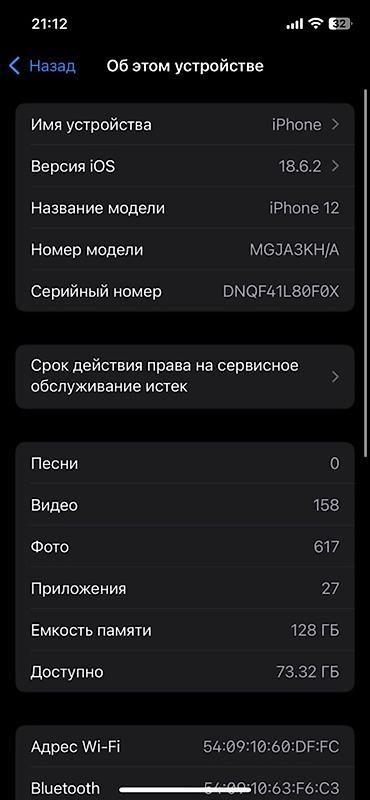 IPhone 12 128Гб. Состояние норм, есть потертости и царапины, при включенном экране особо не видны (см фото), без сколов или трещин. Аккумулятор 83%. ❗️Чтобы быстрее ответил пишите в Telegram @Esp...