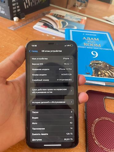 IPhone 12 Pro, 128 ГБ все работает состояние жакшы басы 20500срочно сатылат алам дегендерге тушом Характеристики и особенности: - Модель: iPhone 12 Pro (номер модели MGML3KH/A) - Память: 128 ГБ (...