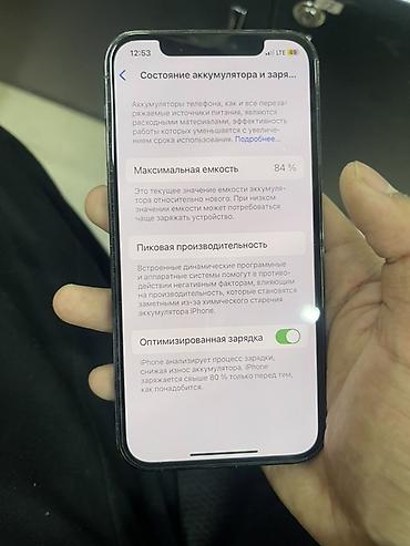 Состояние аккумулятора по меню: Максимальная ёмкость 84%, включена «Оптимизированная зарядка».