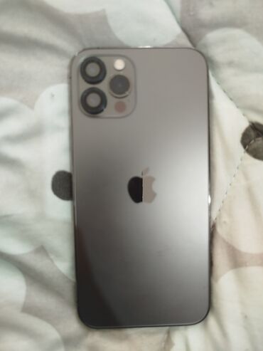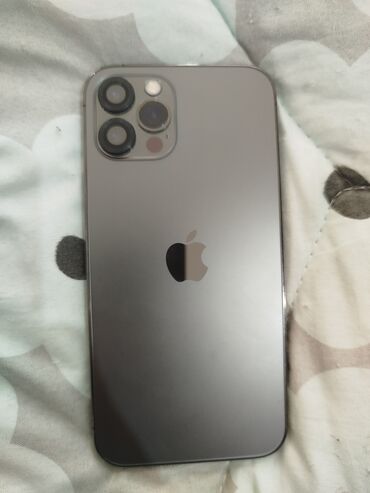 - Графитовый iPhone 12 Pro с тройной камерой и логотипом Apple