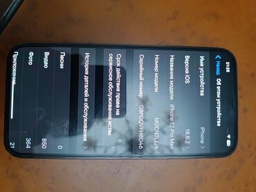 IPhone 12 Pro Max, модель MGCM3LL/A (по экрану устройства), iOS 18.6.2. Цвет — Pacific Blue.