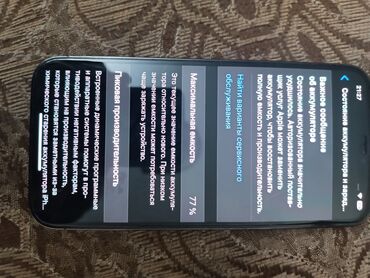 - Аккумулятор: максимальная емкость 77% (отображается сообщение «Состояние аккумулятора значительно ухудшилось», предлагается сервисная замена).