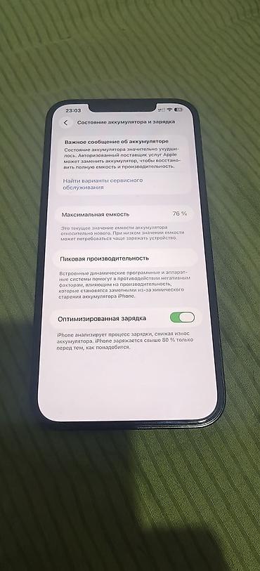 - Аккумулятор: максимальная ёмкость 76% (скрин в фото), включена оптимизированная зарядка