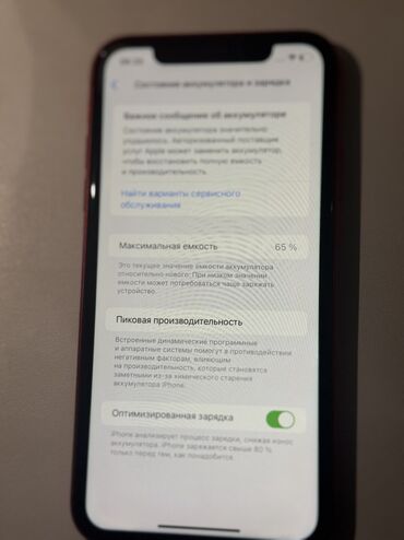 - Аккумулятор: максимальная ёмкость по данным iOS — 65% (см. скрин на фото), включена «Оптимизированная зарядка»