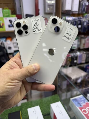 - iPhone 13, 128 ГБ. Двойная камера по диагонали, стеклянная задняя панель, алюминиевые грани. На наклейке указана ёмкость батареи 90%. Цена 28000 сом