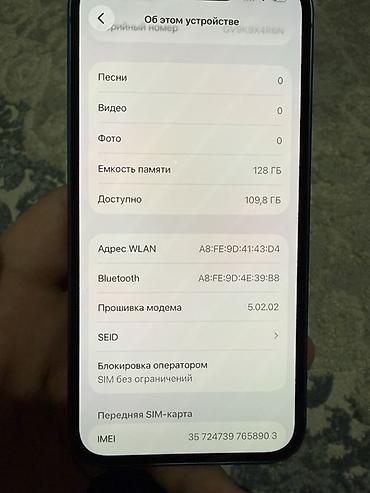 - Память: 128 ГБ (доступно ~109,8 ГБ на фото)