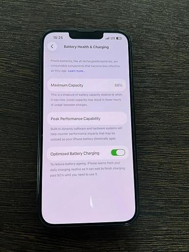 - Аккумулятор: максимальная емкость 86%, включена оптимизированная зарядка.