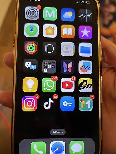 - Отображены стандартные приложения iOS и популярные программы на домашнем экране.