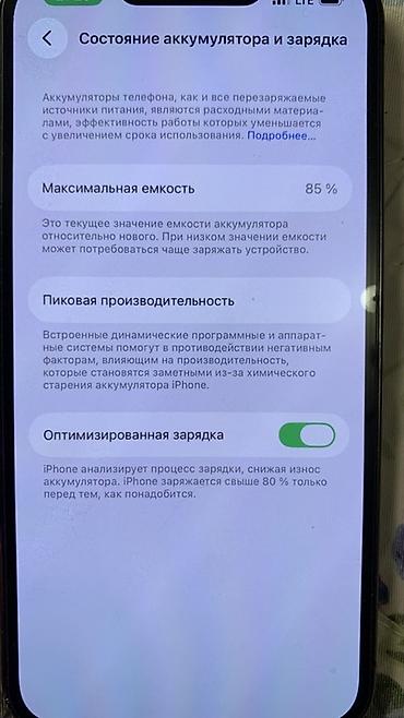 - Емкость аккумулятора по данным системы: 85%, активна функция «Оптимизированная зарядка»