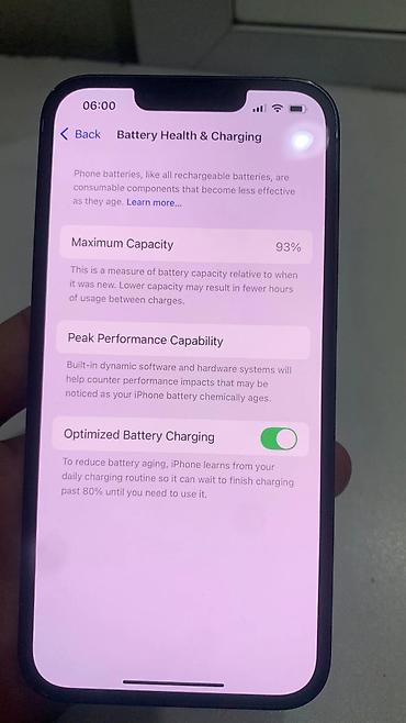 - Аккумулятор: максимальная ёмкость 93% (скриншот в настройках Battery Health & Charging).